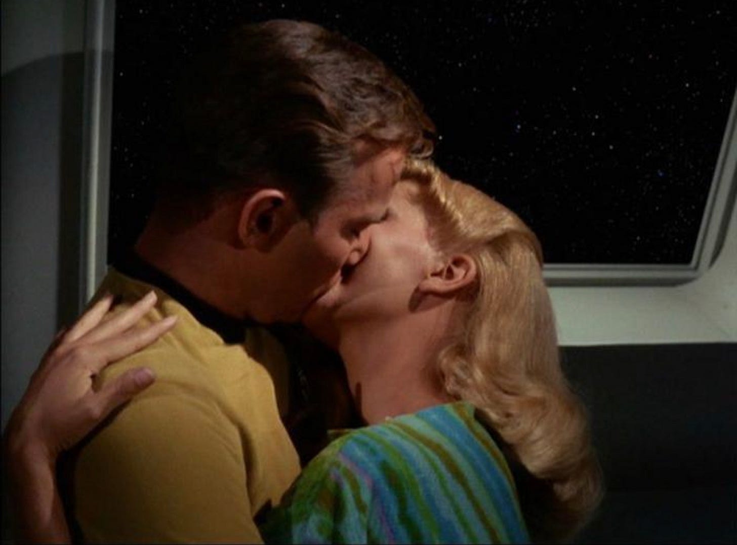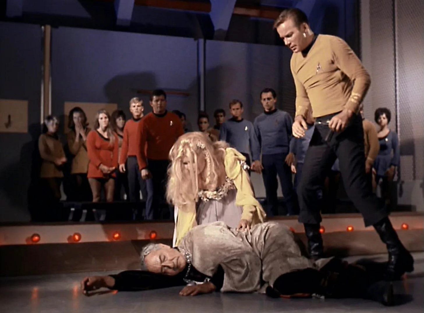 Kirk must find out the truth. But we mustn’t let that interfere with his ability to sweet talk a woman whenever possible. So what if she might be the offspring of a mass murderer.